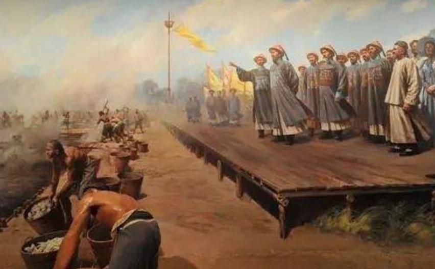 1839年6月3日,道光十九年四月廿二,广东虎门搭起了一座礼台,前面挂著一面黄绫长幡,上书"钦差大臣奉旨查办广东海口事务大臣节制水陆各营总督部堂林",广东各高级官员全部出席。虎门销烟正式开始!这次销烟于国人而言,可谓是救国的销烟!救民的销烟!