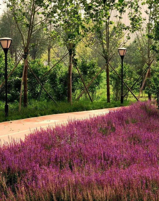 二月兰等各种树木和花卉,