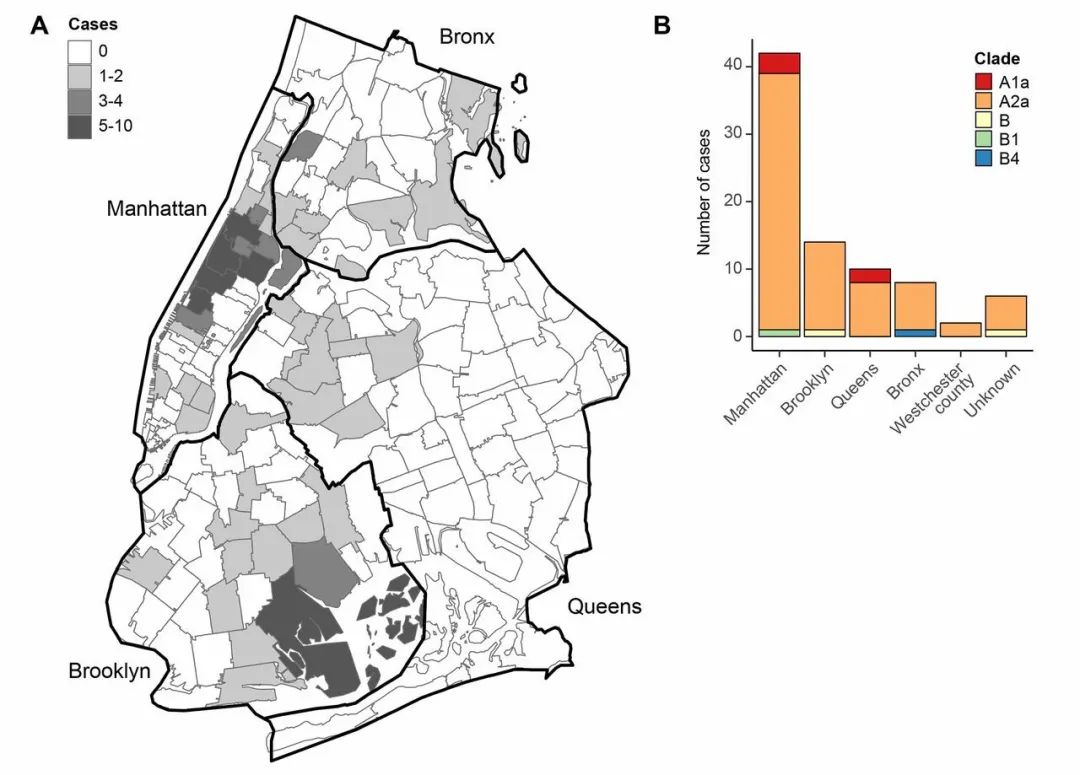 据西奈山伊坎医学院(Icahn school of Medicine at Mount SInai),包括纽约市立大学公共卫生学院(CUNY SPH)博士生布里安·奇费里(Brianne Ciferri)在内的研究人员对SARS-CoV-2进行的首次分子流行病学研究显示,纽约市的首次确诊COVID-19病例主要来自欧洲和美国。纽约市已经变成美国SARS-CoV-2感染的主要震中之一,在大都市地区有近17000人死亡。了解病毒何时到达纽约以及病毒的传播途径对评估和制定遏制策略至关重要。