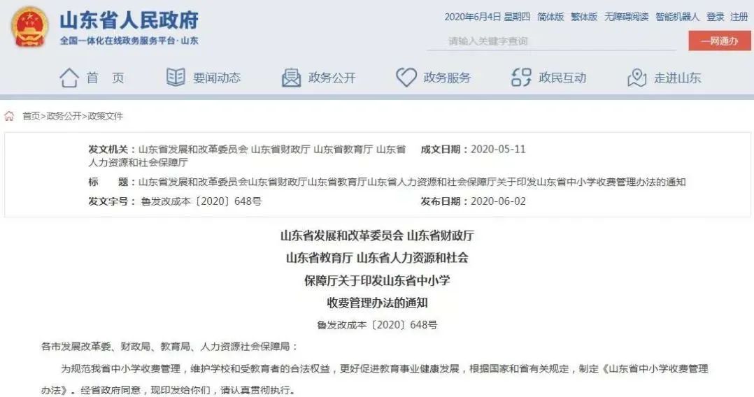 为规范我省中小学收费管理,维护学校和受教育者的合法权益,更好促进教育事业健康发展,根据国家和省有关规定,制定《山东省中小学收费管理办法》。经省政府同意,现印发给你们,请认真贯彻执行。
