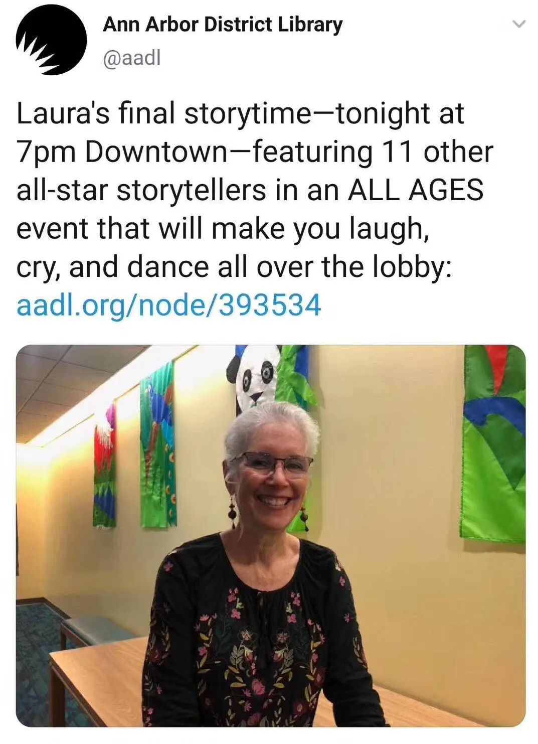 有一天我还收到一封来自图书馆的邮件,标题是“Ms. Laura的告别故事会”。