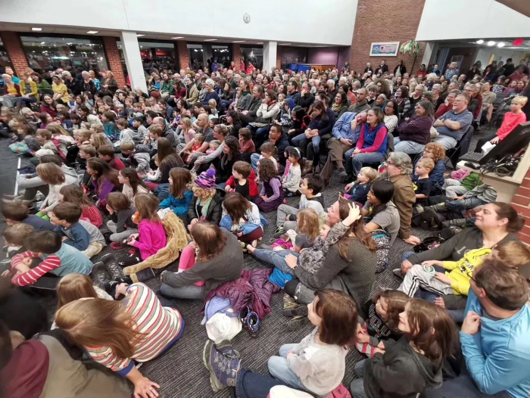 那一天的故事会,不是在平时的活动室里进行,而是在进门的大厅里。平时空旷的大厅里这次挤满了人,其中有一大半是没带孩子的年轻人和十几岁的中学生——他们都是听Ms. Laura的故事长大的,这个小镇上的人恐怕有一半都是吧。活动最后,大人孩子都涌上前去,排队轮流与她合影。那一天,一位普通的图书馆员,俨然成了小镇人们心目中的英雄。