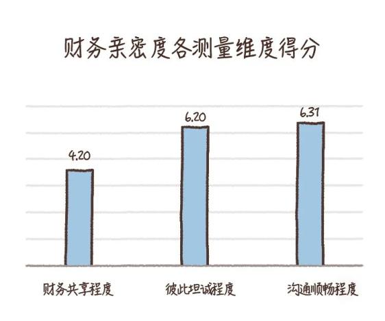 其中,财务共享程度得分最低(4.20分);彼此坦诚程度(6.20分)和沟通顺畅程度(6.31分)的得分稍高。