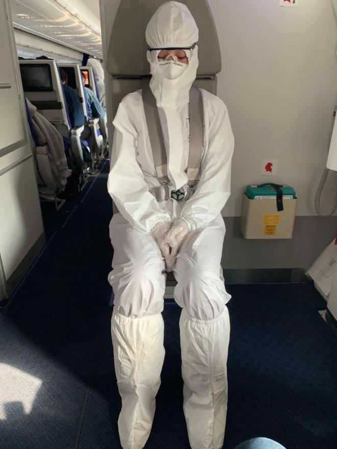 上机前他们需要穿戴好防护服、护目镜、口罩等防护用品,在执飞一些国际航班时,甚至还要穿上成人纸尿裤才能开始工作。