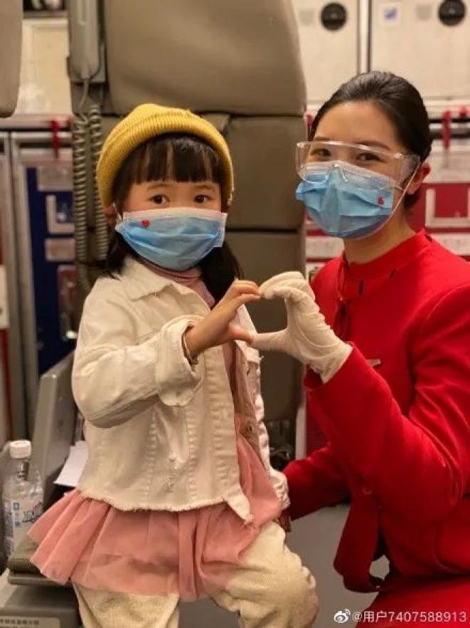 在三月中旬有一次飞广州的航班上临下飞机的时候,坐在后排的一家三口从包里掏出一包口罩递给一位空姐,说:“送给你吧,你在飞机上,比我们更需要。”