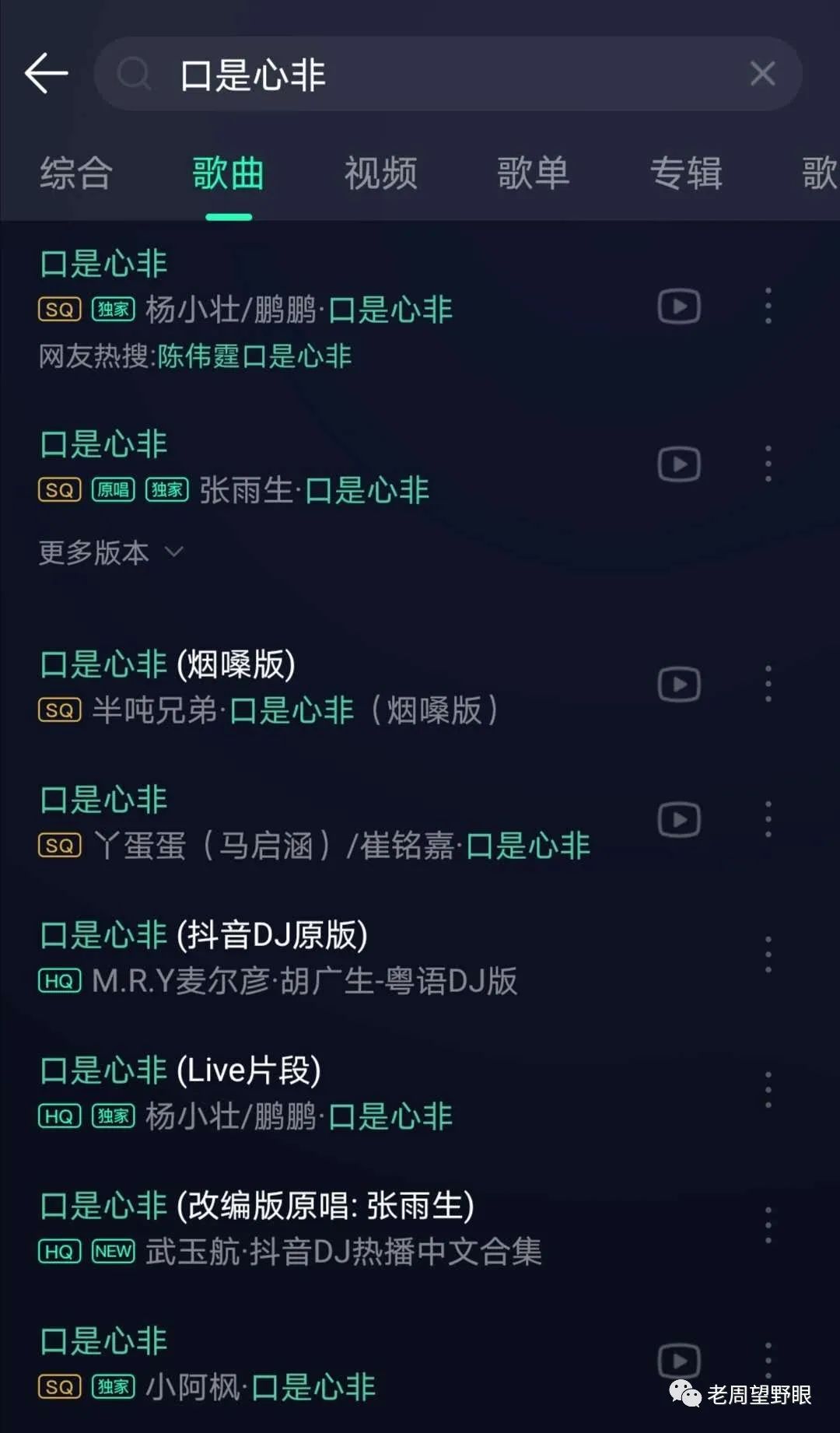 这首《口是心非》,被无数人作为BGM,说实话我是很伤心的。因为这首歌是我非常喜欢的歌手张雨生的作品,而且是他1997年最后一张专辑的标题歌,专辑发布后不久他就因车祸身故了。那张专辑的封面是一个长着长鼻子的匹诺曹,寓意爱情中的谎言与真相。“口是心非”四个字,蕴含了张雨生对感情的思考。没有想到二十多年以后,它竟以这样的形式在内地再次走红,红得一塌糊涂。以至于在音频网站搜索“口是心非”四个字,需要认真找,才能找到张雨生的原曲。