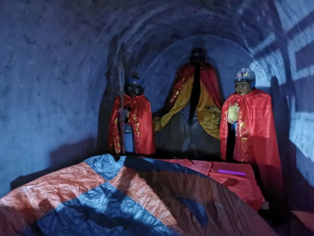 我掉头回来,僧人开车驶进一条小路,即使晚上也能看出来,是极其偏僻的一处地方,我真有点佩服他能找到这里。这里是一处窑洞里的关公祠,除了关公那间屋子,其它几处房间都透露出一副破败相。