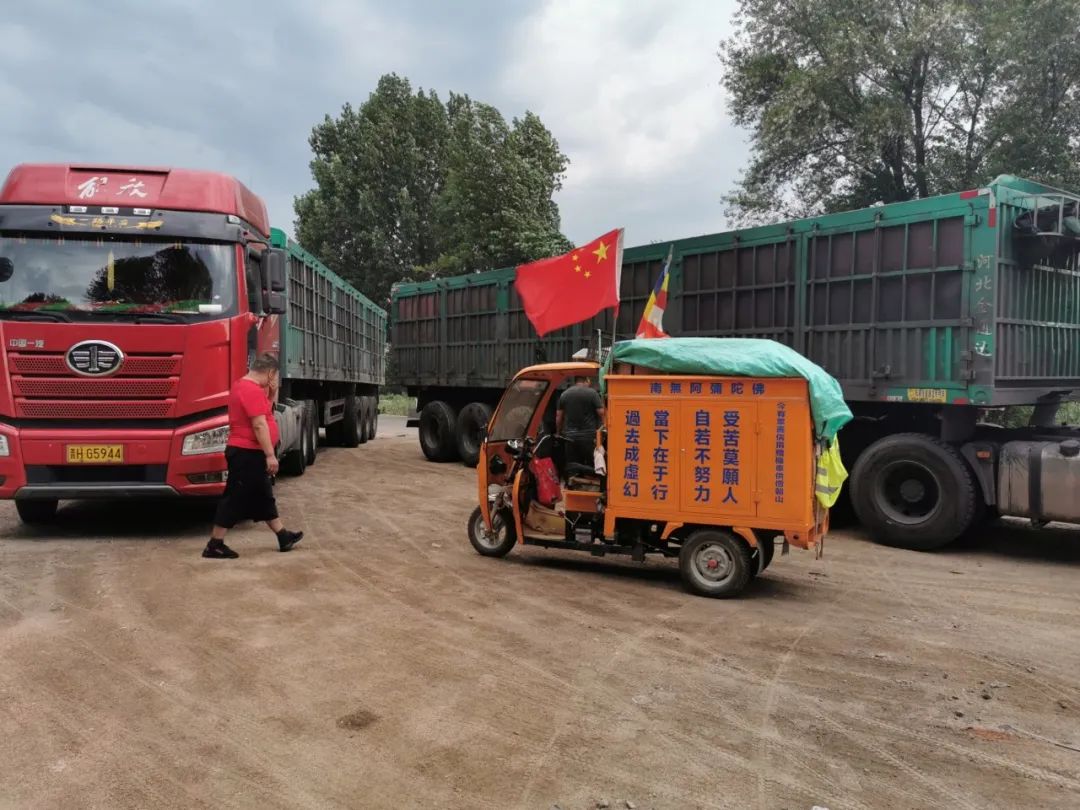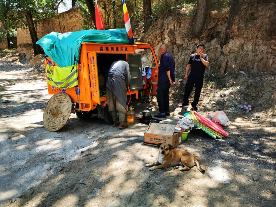 僧人的小车也是别人供养来的。刚下山出发的时候,他推着辆手推车,一路有信徒跟随。有个信徒连续几天开车四十公里来送饭,后来那人说,不行啊,师父你这太辛苦了,我们给你捐辆车吧。