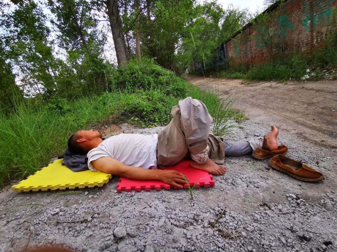 半小时过后,阳光移过来。他爬起,拎着垫子走了几步,直接睡在了小路中央的树荫里,好在这里偏僻,并没有人来。