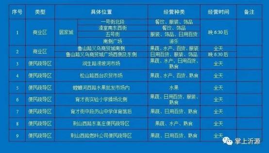 城区范围内新建四路、秋泉路、泉水路、青龙山北路、五岭路、世纪广场、凤凰山广场、琉璃园等路段和区域(具体见附件),各镇街也要选择合适地点设立便民早市夜市和特色经营区域。