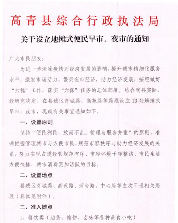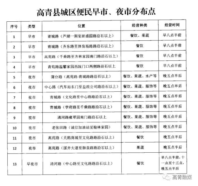 高青因时因地制宜在多路段共设立13处地摊式早市、夜市。
