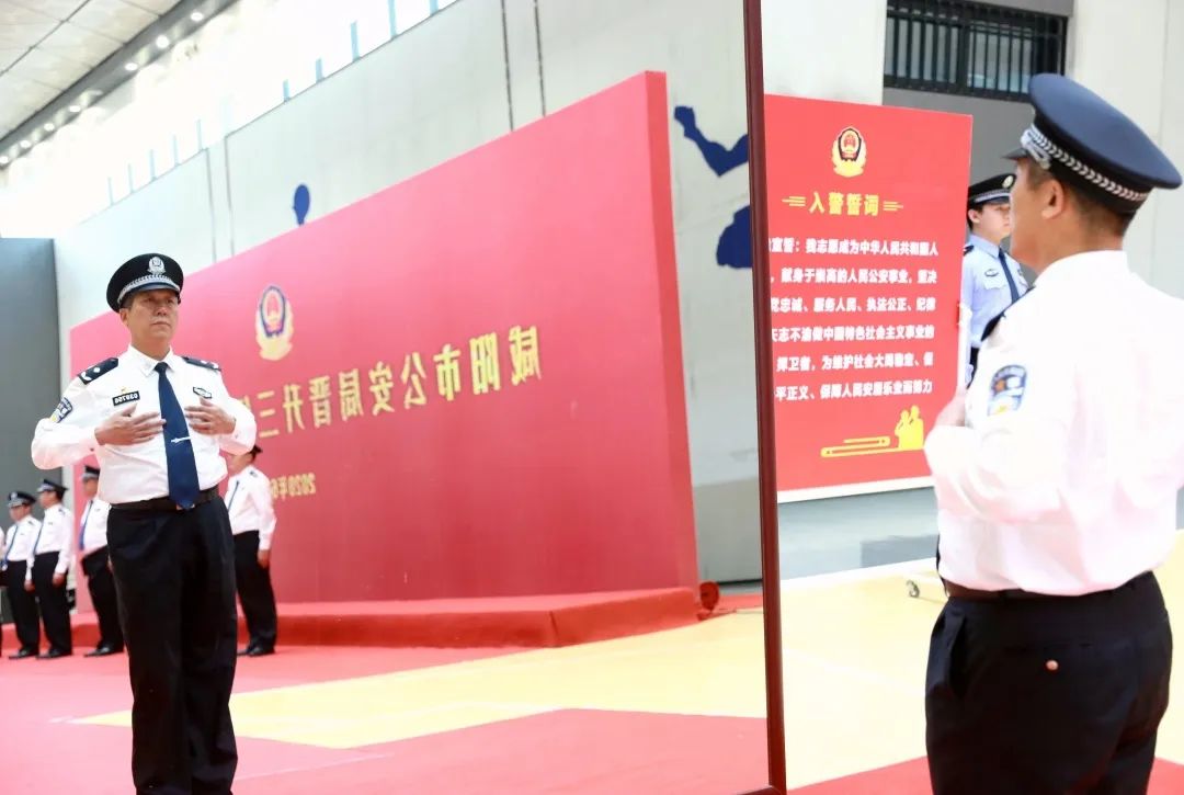 “我志愿成为中华人民共和国人民警察,献身于崇高的人民公安事业,坚决做到对党忠诚、服务人民、执法公正、纪律严明……”