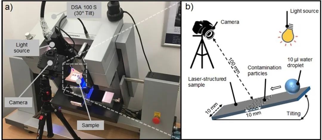 该成果以“ Characterization of self-cleaning properties on superhydrophobic aluminum surfaces fabricated by direct laser writing and direct laser interference patterning ”为题发表在 Applied Surface Science 。