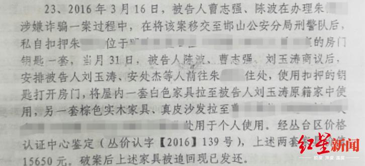 还有人办理某案件时,在将该案移交上级警方后,私自扣押当事人住处钥匙,趁机进入别人家中,将一套家具搬走,供个人使用;另一套实木家具、真皮沙发被转手,供涉警人员抵偿其个人债务。