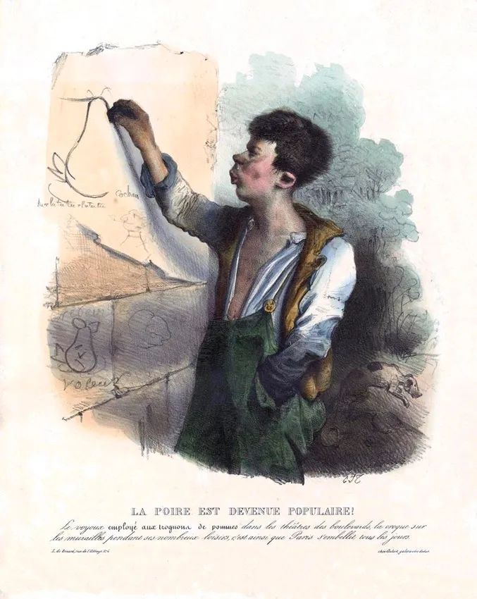 这些作品不仅传播了梨表情包,而且清楚地表明,所有年龄、所有阶级的人都一样憎恨着国王。萨克雷与特拉维耶斯相呼应,写道:“几年前在巴黎的每个人一定都能忆起那些画遍了城墙的著名梨子,它们和路易·菲利普多么相像,像得可笑。”