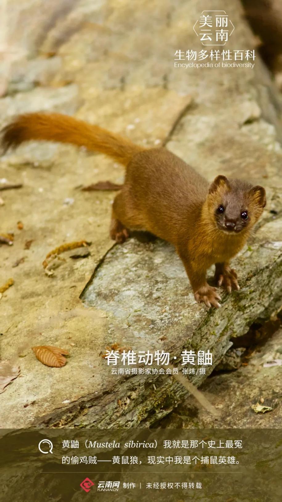 脊椎动物,哺乳纲,食肉目,鼬科,鼬属,俗称黄鼠狼、黄皮子。黄鼬可在森林、河谷、平原、丘陵等多种环境里生存,国内多地分布。照片拍摄于大理。