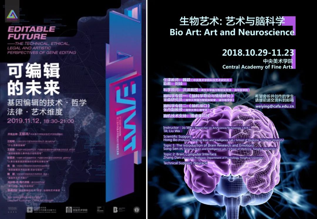 我在央美教授科技艺术相关的课程,以生物艺术/设计课程为主,也有和策展相关的课程。今年的两门课《艺术与脑科学》以及《生态艺术》是在生物艺术框架之下开始的新方向。《艺术与脑科学》指向微观,是人类内在的智能来源,可以在技术维度和哲学维度上与艺术结合全面铺开成一个有潜力的新学科,脑与生物媒介艺术实验室也正在筹备中;《生态艺术》则指向宏观,是人类与其他物种共同居住星球的未来方向,“生态转向”也是国际策展界近期的重大趋势。《全球科技艺术机构》也是策展领域应运而生的新方向,旨在梳理科技艺术领域内的机构和展览史。