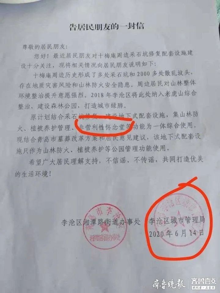 原标题:《青岛一景区旁要建地宫式怀念堂?离最近的居民楼只有100多米,住户直接不乐意了…》