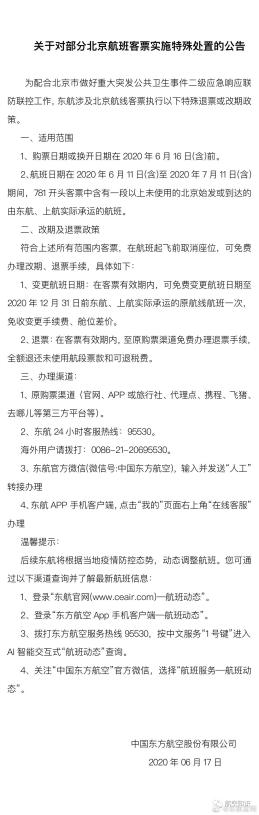2020年6月11日(含)-2020年7月11日(含)期间,781开头客票中含有一段以上未使用的北京始发或到达的由东航、上航实际承运的航班