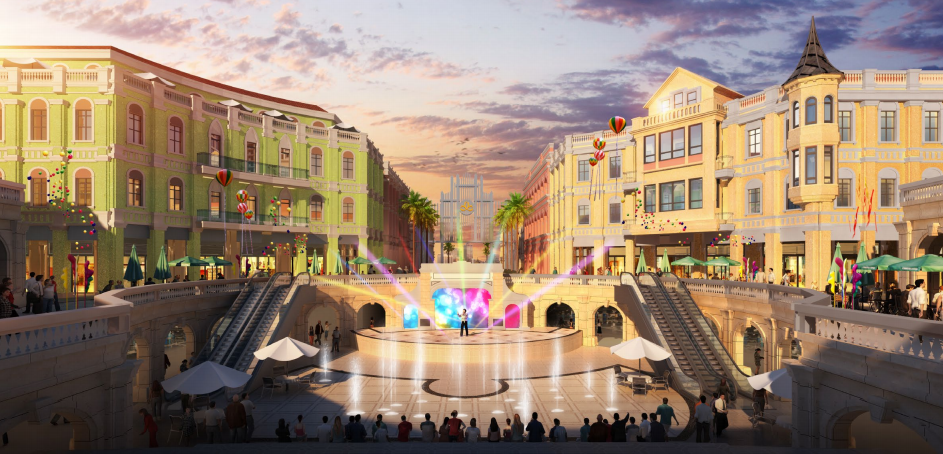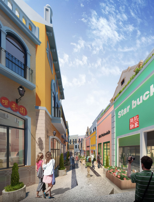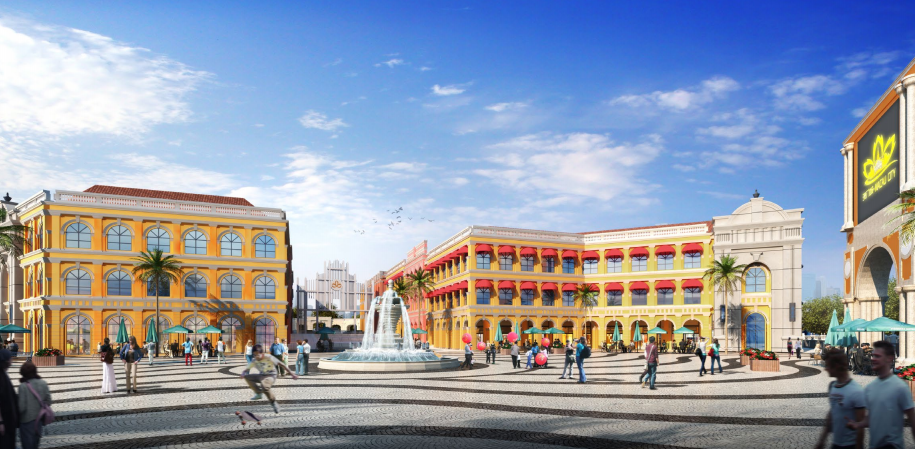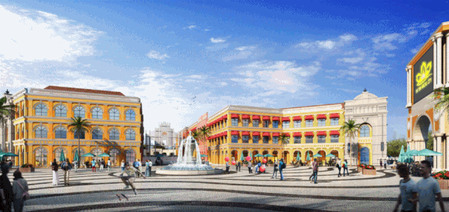 澳门城一期规划建设“一心两线七主题”街区,未来将打造成一座极具唯美浪漫气息的葡式小镇、功能复合的综合性商业小镇以及充满人文魅力的世外桃源。