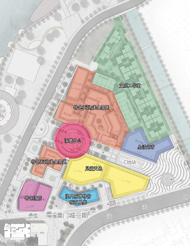 此外,一期将划分为7大主题:演艺中心、特色街区/美食街区、文创工作室、生活超市、儿童天地、特色酒店、澳门城博物馆/城市展厅,商业街区业态丰富。