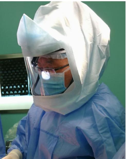 如果在关节置换手术中,关节假体周围“残留”少量细菌,就将引发灾难性的并发症。普通的手术服无菌范围有限,肩部以上都不是无菌部位。而这套“太空服”全包围的结构可以把无菌范围扩大到头部,可以有效防止感染。另外头盔上自带的照明系统可以辅助照亮手术视野,让手术的视野更加清晰。