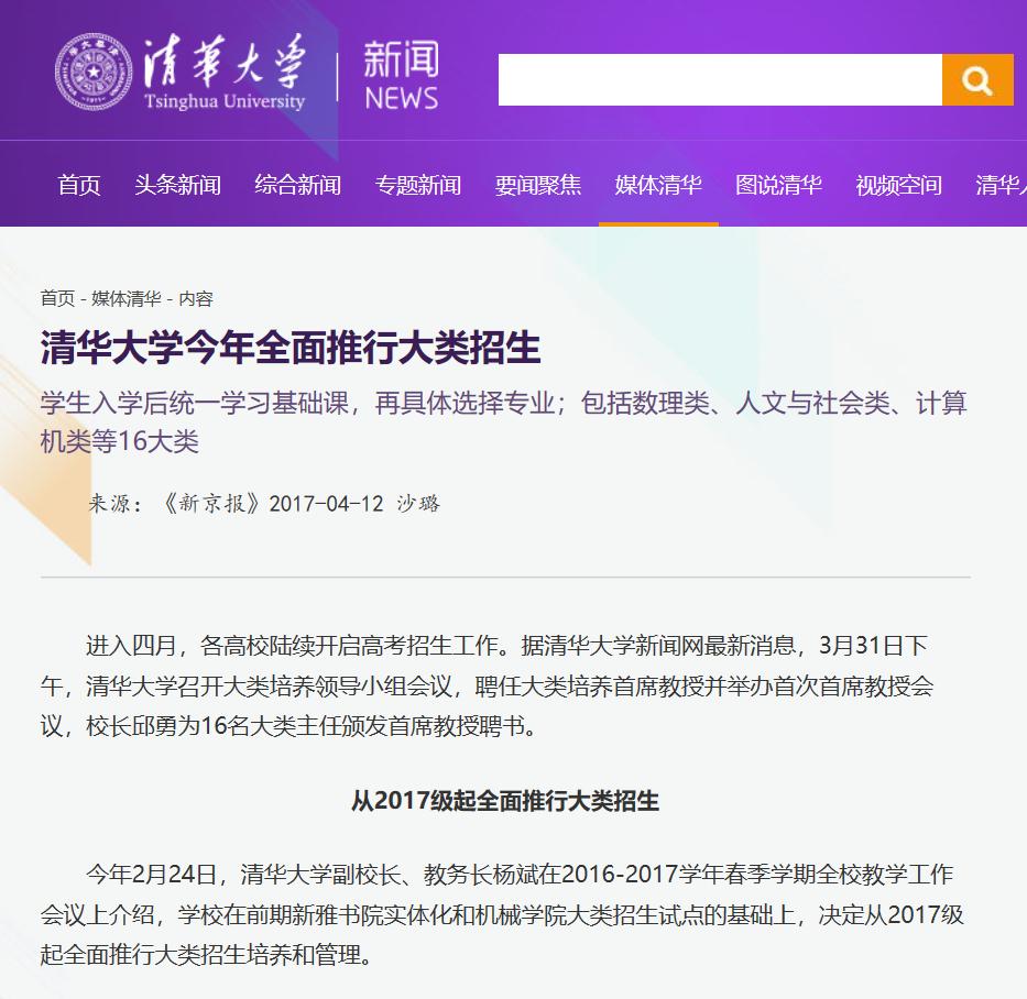 在报考清华大学前,机械学院六字班的石方正就了解到2016年机械大类统一招生的信息。“老师说大类招生后,我们有再次选择的权利,相当于可以先到学校了解一年以后,然后再去找自己喜欢的专业,我就觉得挺好的。”