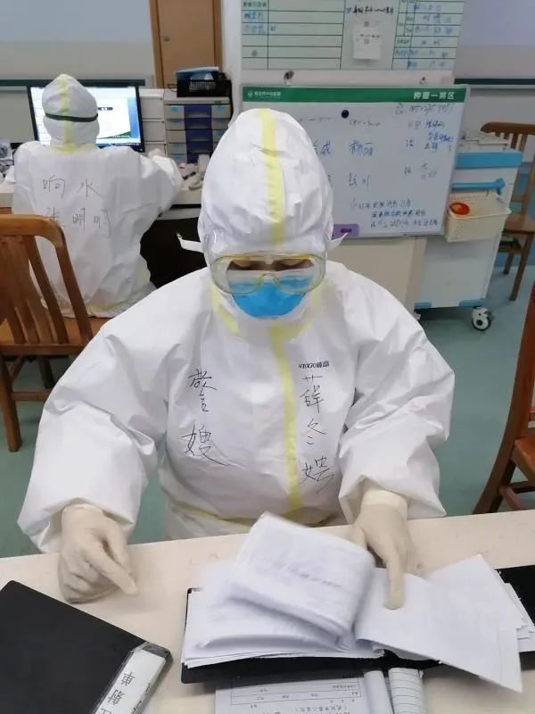 一到病区,薛冬娉就在自己的防护服上写下“警嫂”两个字。病区白色的身影中,“警嫂”两个字格外耀眼,向患者们传递出一种特别的信任和力量。