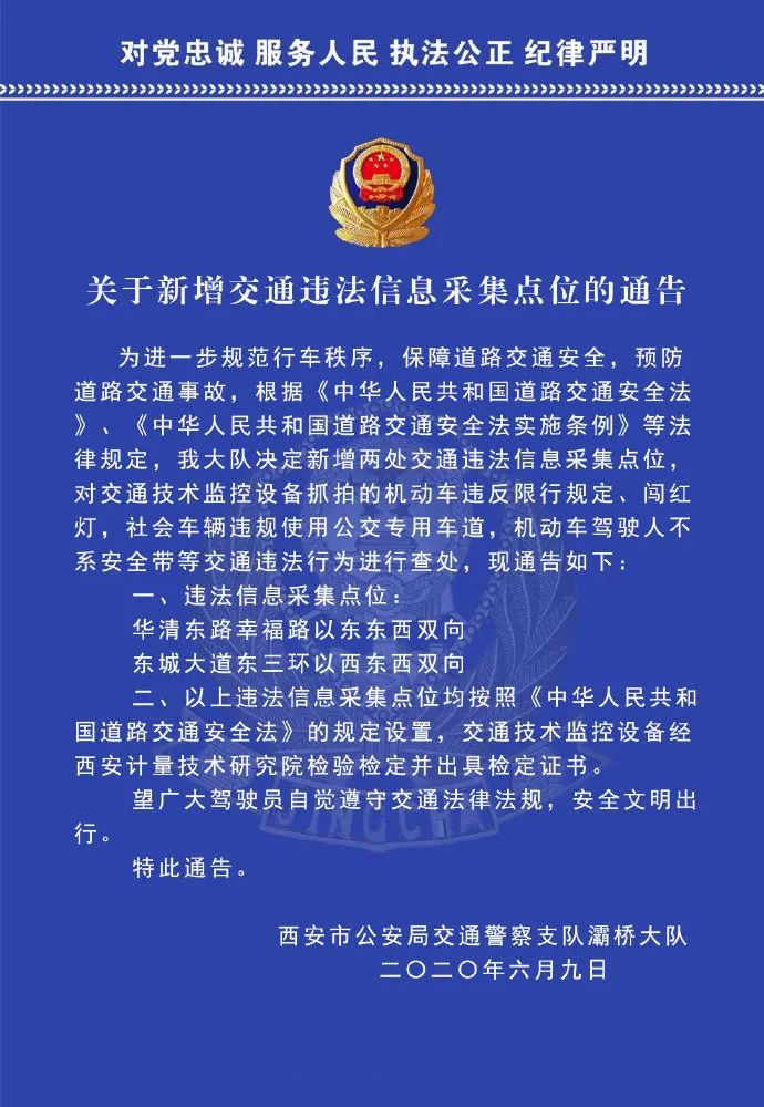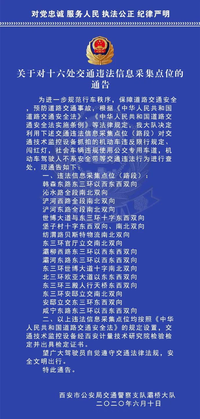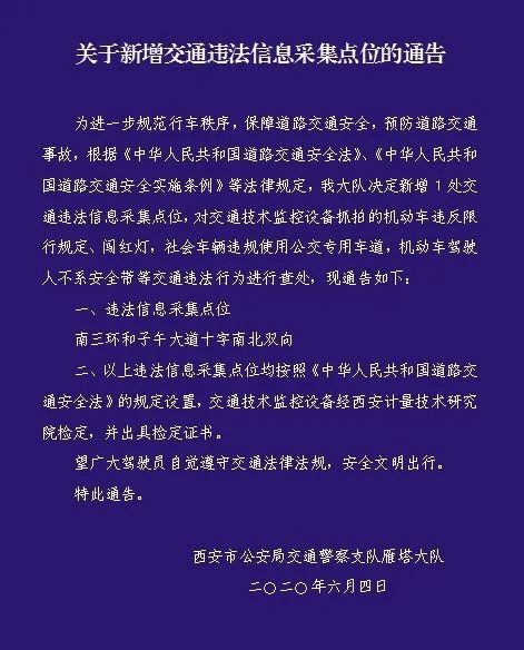 附:新增交通违法信息采集点位通告