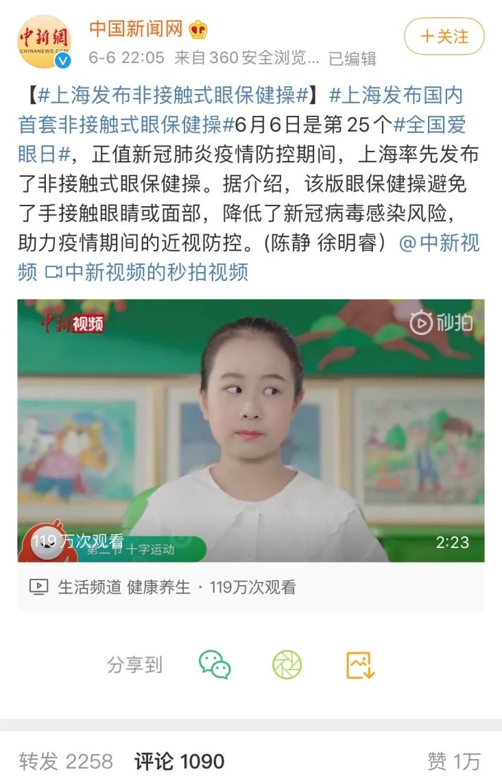 即便是到了今天,要尽可能减少手部和面部接触的后疫情时期,也有多版“非接触式”眼保健操在“与时俱进”。