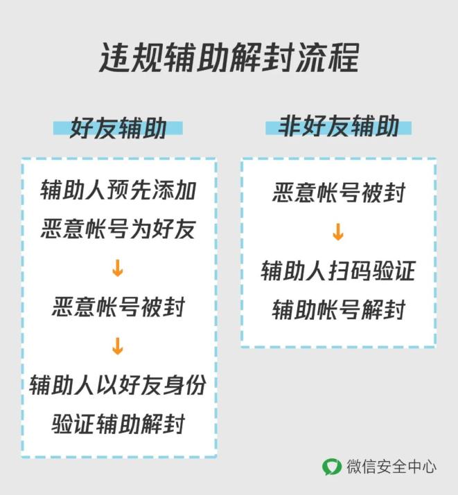 针对这一乱象,今年4月,平台在《微信个人帐号使用规范》中明确规定:对违规辅助他人解封的帐号限制使用微信全部或部分功能,并进行短期或长期封号处理。