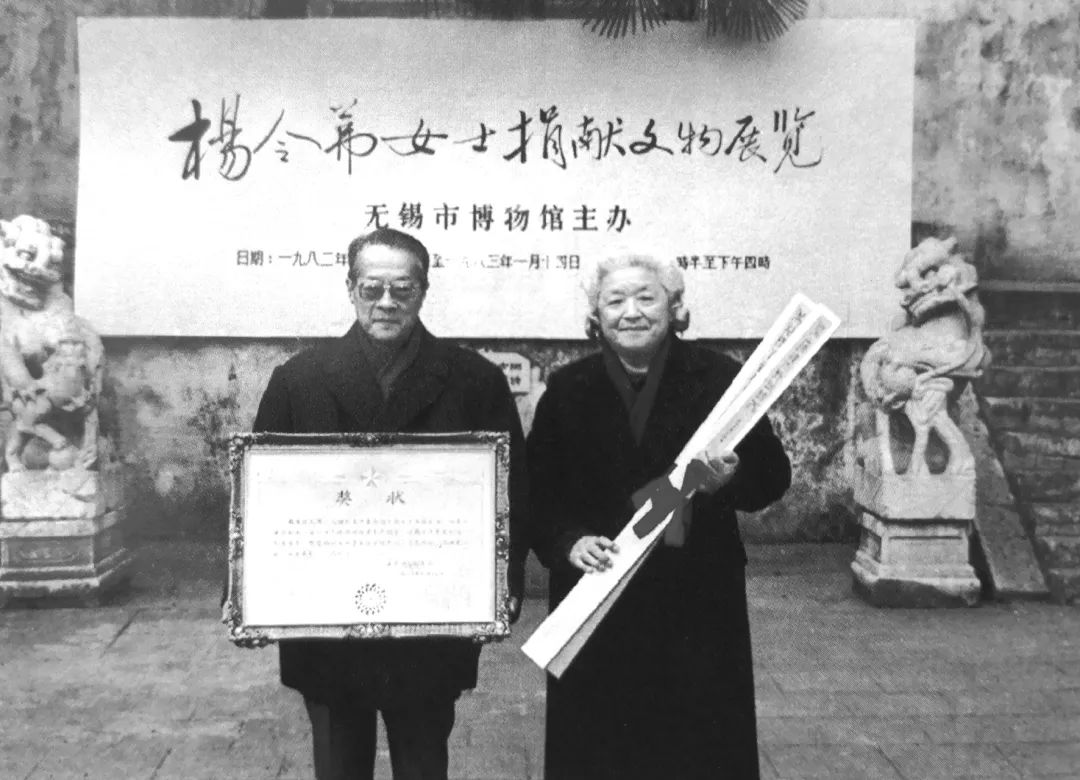 图片展结束后,为考证此事,我查阅了大量荣氏家族资料,最终在部里的档案室找到了一本1997年内部印行的书籍《荣漱仁、杨通谊夫妇爱国奉献事迹回顾》,书名是原上海市长汪道涵题写的。其中就收录了这张照片,并介绍说1987年6月,杨通谊的姑姑杨令茀捐赠给故宫博物院的清乾隆所用的翡翠水盂、玉雕香炉。真相大白,杨令茀的名字也首次映入眼帘。