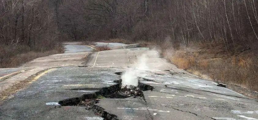 这就是为什么宾夕法尼亚州会在1993年就关闭61号公路途径这个地区的4000英尺(1219米)长的路段,支撑路面的地下支柱被大火摧毁或削弱,使得道路完全不适合通车。