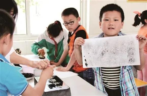 “龟山书法与汉画艺术欣赏与创作”课程是最受学生青睐的“网红课”。学校毗邻龟山汉墓风景区,老师鼓励学生走进龟山民间博物馆,对龟山丰富的篆刻书法与汉画进行欣赏与创作。春天来了,教师李光权和学生一起进行拓片制作,让学生了解拓片的发展史、拓片艺术与古代文化的关系。