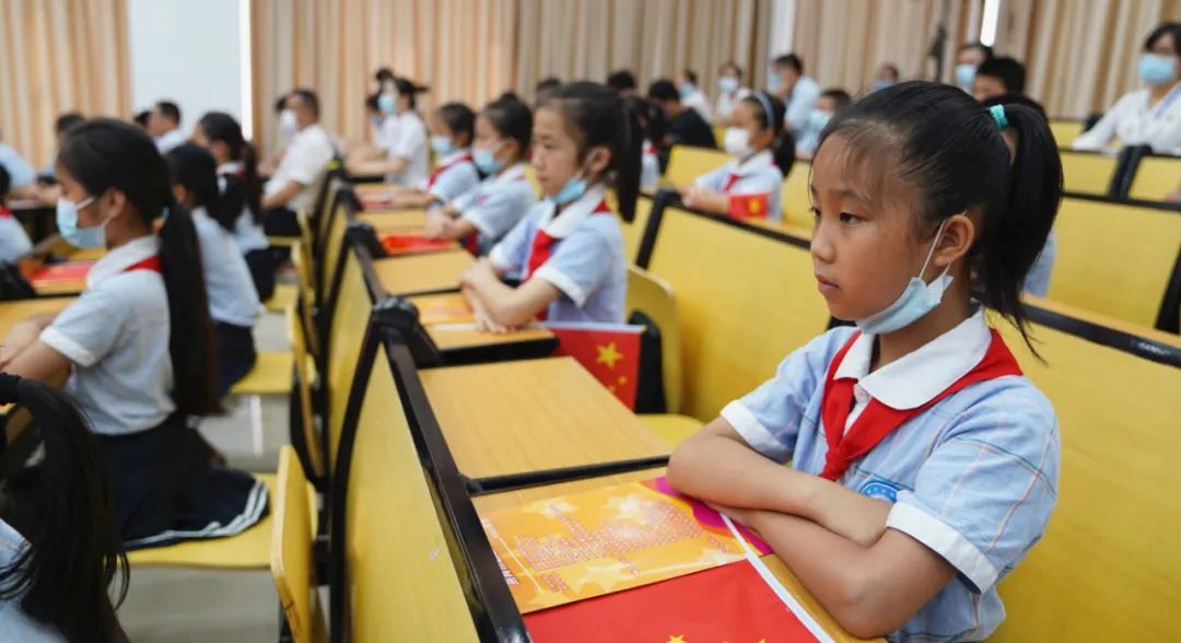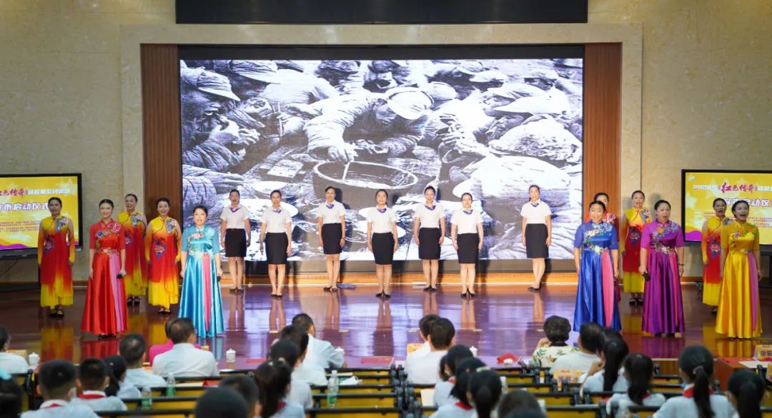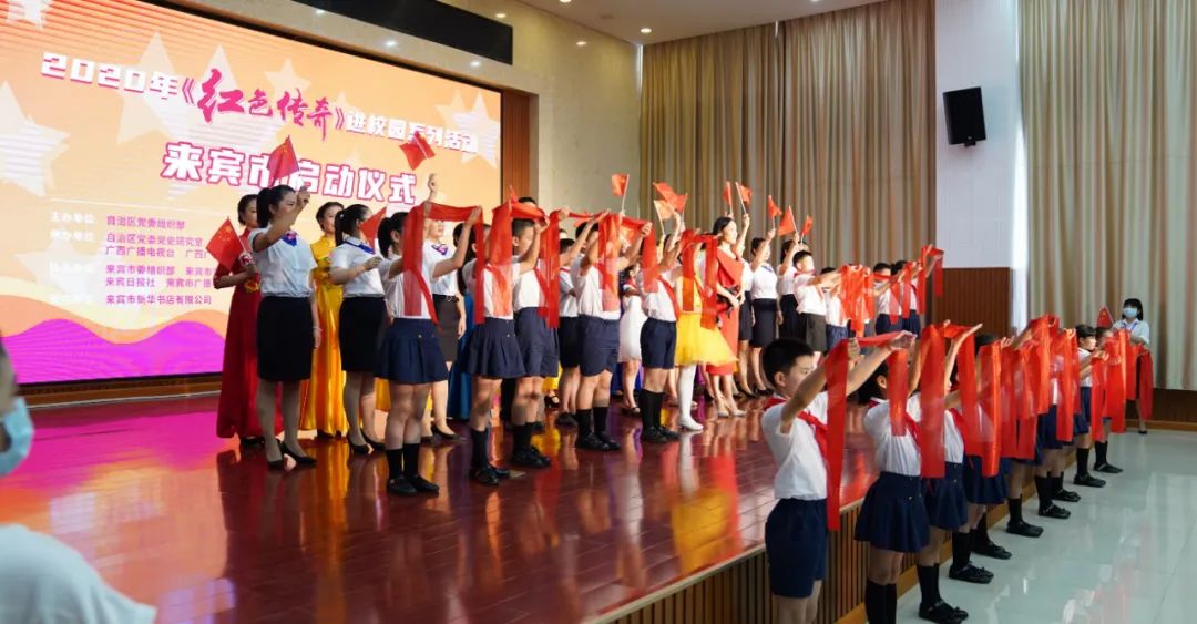 6月22日,在来宾市政和小学,20位学生代表演出的“童心向党”主题歌咏《烽火少年》,拉开了2020年《红色传奇》进校园系列活动来宾市启动仪式的序幕。
