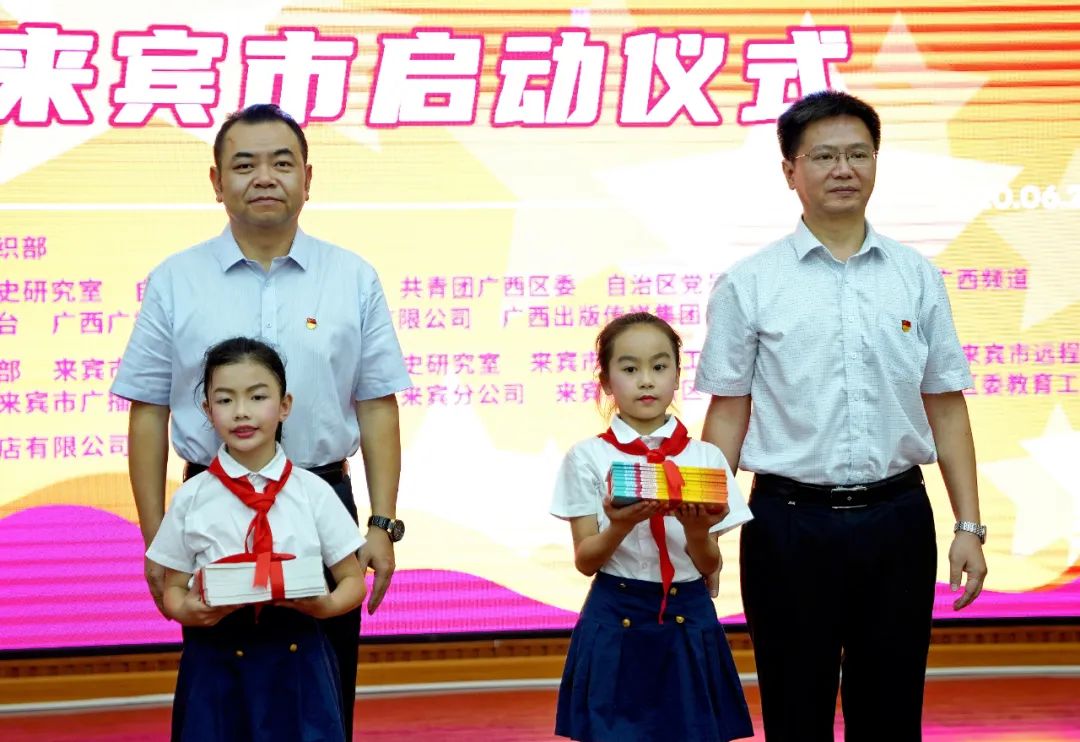 观看《红色传奇》宣传片,聆听片中展示的可歌可泣的革命故事,分享观看感悟,聆听广西学生军老兵后代追忆老兵革命历程,捐赠《红色传奇》读物……丰富的红色教育内容,让现场洋溢着满满正气,激发师生的爱国情怀。老师代表的观感分享,师生代表的精彩演绎、诗文朗诵,让台下听众备受感染,带着大家一同回到那段可歌可泣的革命历史。《红色传奇》史料真实、生动好看,是思想性、艺术性、可视性相统一的精品教材。“每个孩子的心中都有一颗红色的种子,红色精神就是种子的养分,辛勤的园丁源源不断的供给养分,让红色的种子开花绽放,让红色精神融入新时代少年儿童的灵魂。”来宾市特殊教育学校老师陶自蹊分享观后感时说。来宾市委常委、组织部部长农毅说:“《红色传奇》这部由自治区党委组织部历时3年打造的20集革命历史题材纪录片,为我们开展革命传统教育提供了丰富生动的教材。”农毅介绍,来宾市在“七一”前后开展纪念建党99周年“践初心促发展”系列七大活动,《红色传奇》进校园是其中一个非常重要的活动。通过开展“看《红色传奇》、讲红色故事、唱红色歌曲、绘红色画卷、诵红色经典、悟红色精神”等活动,不断加强对教师队伍和青少年学生的思想政治教育和革命传统教育,进一步激发广大师生爱国情怀,以昂扬向上的精神风貌和卓有成效的工作业绩向建党99周年献礼。据了解,《红色传奇》进校园系列活动,由自治区党委组织部、自治区党委教育工委、共青团广西区委联合组织在全区开展。活动是为了进一步巩固拓展“不忘初心、牢记使命”主题教育成果,建立和落实不忘初心、牢记使命的长效机制,加强中小学校党的建设,全面贯彻党的教育方针,通过党建带团建带队建,进一步引导广大师生铭记红色历史、追寻红色足迹、传承红色基因、弘扬革命精神,为建党100周年营造浓厚氛围。当天的活动中,自治区党员教育中心(远程办)党员教育二处处长、《红色传奇》总导演刘楠飞介绍了纪录片的创作过程,分享纪录片中所展示的可歌可泣的革命历史故事;自治区革命老前辈韦纯束之女,曾任广西电视台国家一级导演韦平贤回忆讲述革命前辈韦纯束的传奇革命经历。广西新华书店集团股份有限公司、广西新华传文大中专教材有限公司、广西人民出版社有限公司和来宾市委组织部、市委宣传部、市委党史研究室、市委教育工委、共青团来宾市委、市远程办、来宾日报社、市广播电视台、广西广电网络来宾分公司、市新华书店有限公司以及各县(市、区)单位组织部、宣传部、党史研究室、教育工委、团委等单位、部门的相关人员参加活动。供稿:文字|广西日报 蒙进煌 图片|市远程办原标题:《看红色纪录片,听红色革命故事——来宾市《红色传奇》进校园系列活动传承红色基因》