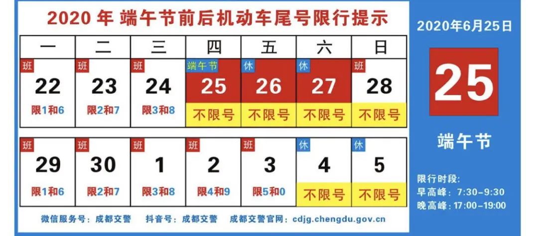 6月23日,成都交警分析近年来端午节的交通情况,发布2020年“端午节”假期“两公布一提示”,同时建议广大驾驶员合理选择出行线路和出行时间,避开出行高峰时段和易堵路段,谨慎驾驶,安全出行。