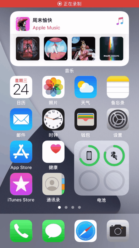 特别是这个电池组件,正常情况下它只显示 iPhone 本身的电量,当 AirPods 配对上后,组件立马多了耳机和充电盒的电量。