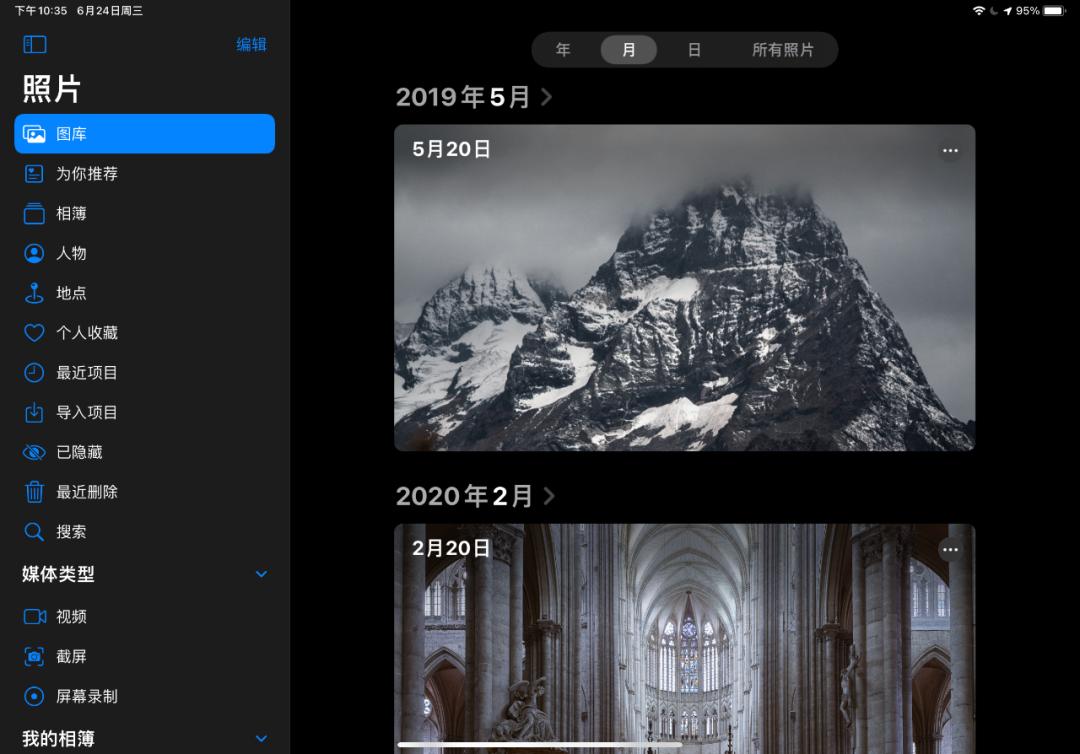 新版 iPadOS 在照片、文件等 App 界面下的视图也有发生一些改变,差友们可以自由选择侧边栏要不要隐藏,有利于我们充分发挥 iPad 的大屏优势。