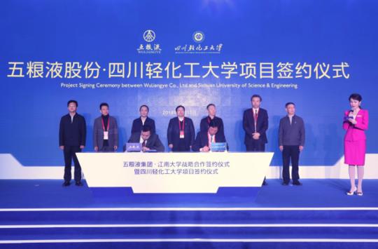 同年12月,五粮液集团与学校共建“中国白酒学院”,并在技术研发、项目合作、人才培养、校园招聘及奖教学金等方面开展深入合作。五粮液集团每年将无偿捐赠给学校700万元,同时每年另出资1000万元作为学校专项科研经费,鼓励和支持学校教育事业发展。