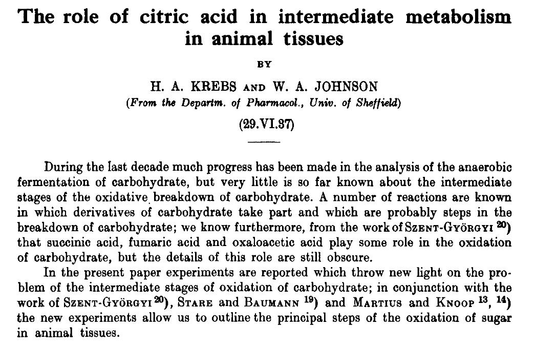 论文:柠檬酸在动物组织中间代谢中的作用(The role of citric acid in intermediate metabolism in animal tissues)