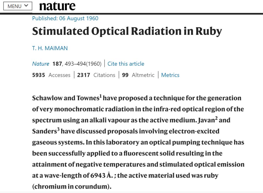 论文:红宝石中的受激光辐射(Stimulated Optical Radiation in Ruby)