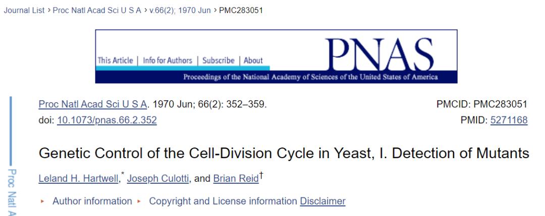 论文:酵母细胞分裂周期的遗传控制(Genetic control of the cell division cycle in yeast)