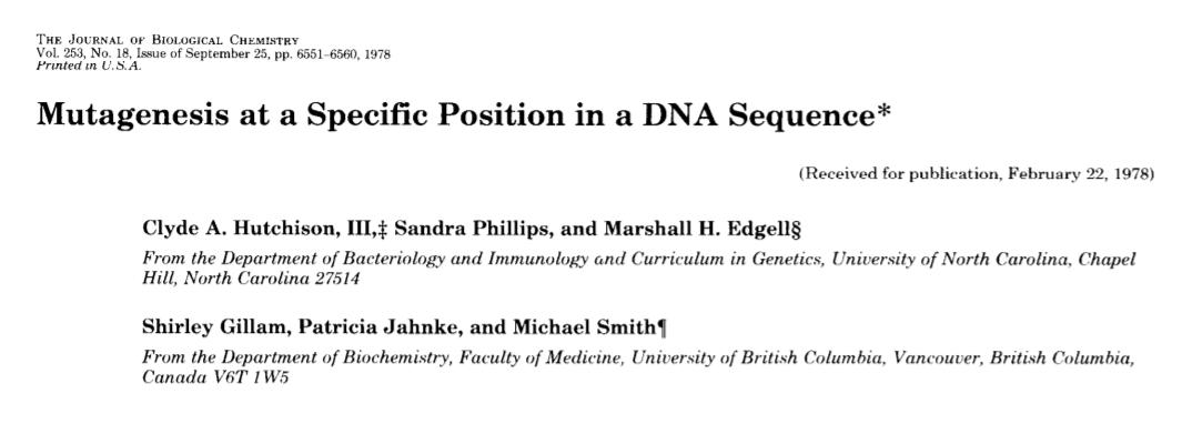 论文:DNA序列中特定位置的诱变(Mutagenesis at a specific position in a DNA sequence)
