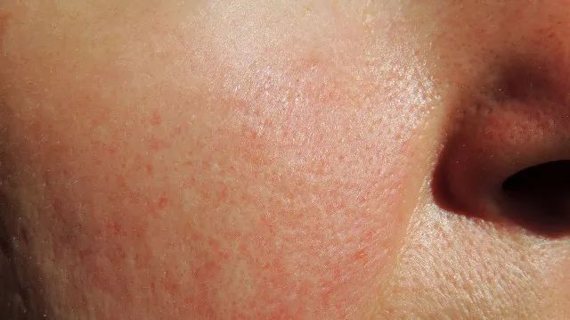 与玫瑰痤疮相比,颜面播散性粟粒性狼疮通常不伴有屏障功能受损,早期是没有红血丝和发红症状的。
