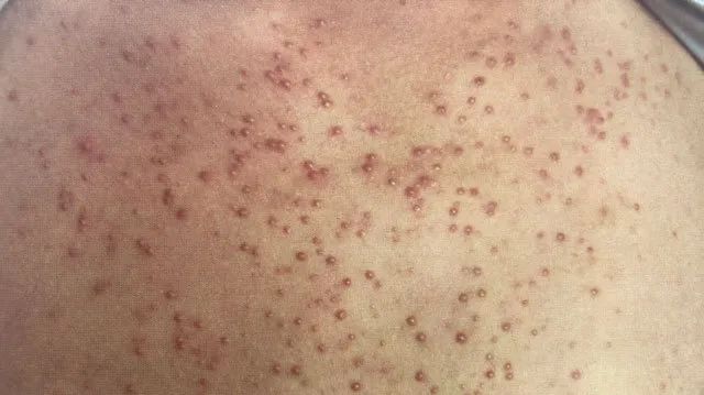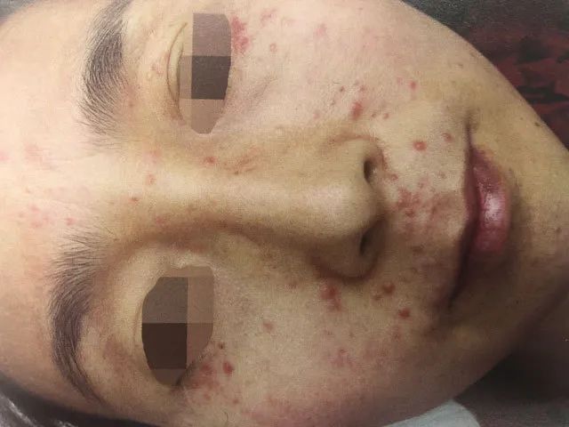 如果没有及时进行科学处理,过段时间脸上可能会出现红色痘痘或者脓疱,这种症状和痤疮类似,可能会被误认为是痤疮。