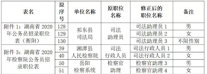 根据招录机关的要求,经研究,对2020年湖南省考试录用公务员个别职位条件和职位名称进行修正。