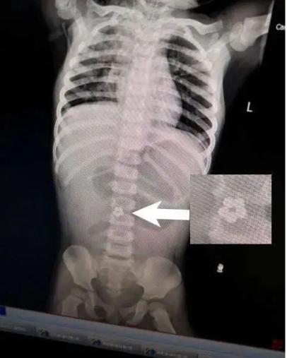 可是,住院治疗“肠胃炎”两天后,小静还是一直吐。一天下来,少说也要吐个十次八次。眼见治疗没效果,医生让孩子拍片检查。这一查居然发现,小静肚子里有5个连成圈的小球!
