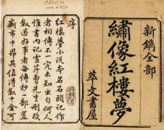 1791年,程伟元和高鹗合作,以萃文书屋名义刊印了《新镌全部绣像红楼梦》,是为程甲本,一百二十回。这是《红楼梦》版本史上首个刊印本,它以抄本无法比拟的价格低廉、故事完整等优势迅速风靡。