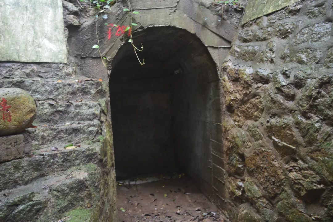 在岛上兜转许久后,老兵在一处坑道旁停下,边看边用颤抖的双手抚摸那凹凸不平的墙壁。